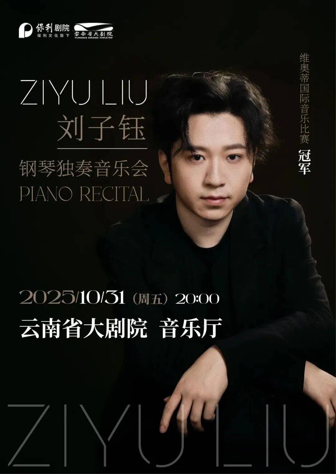 刘子钰,95后钢琴翘楚·中国骄傲业界公认为是当代国际舞台上最杰出最具影响力的中国新生代青年钢琴家之一,他是维奥蒂国际钢琴大赛创赛70年首位中国冠军,被钢琴泰斗阿里·瓦迪盛赞“最具明星潜质的未来大师”与音乐大师巴伦勃依姆、阿巴多获同一殊荣王羽佳、陈萨同门师弟21岁横扫钢琴界九大创始赛事之一,创中国钢琴家历史最佳战绩2024年世界巡演《展望》席卷纽约卡内基厅、维也纳金色大厅,场场爆满,乐评称其演奏“如宝石般璀璨,兼具极限技巧与炽热情感”。