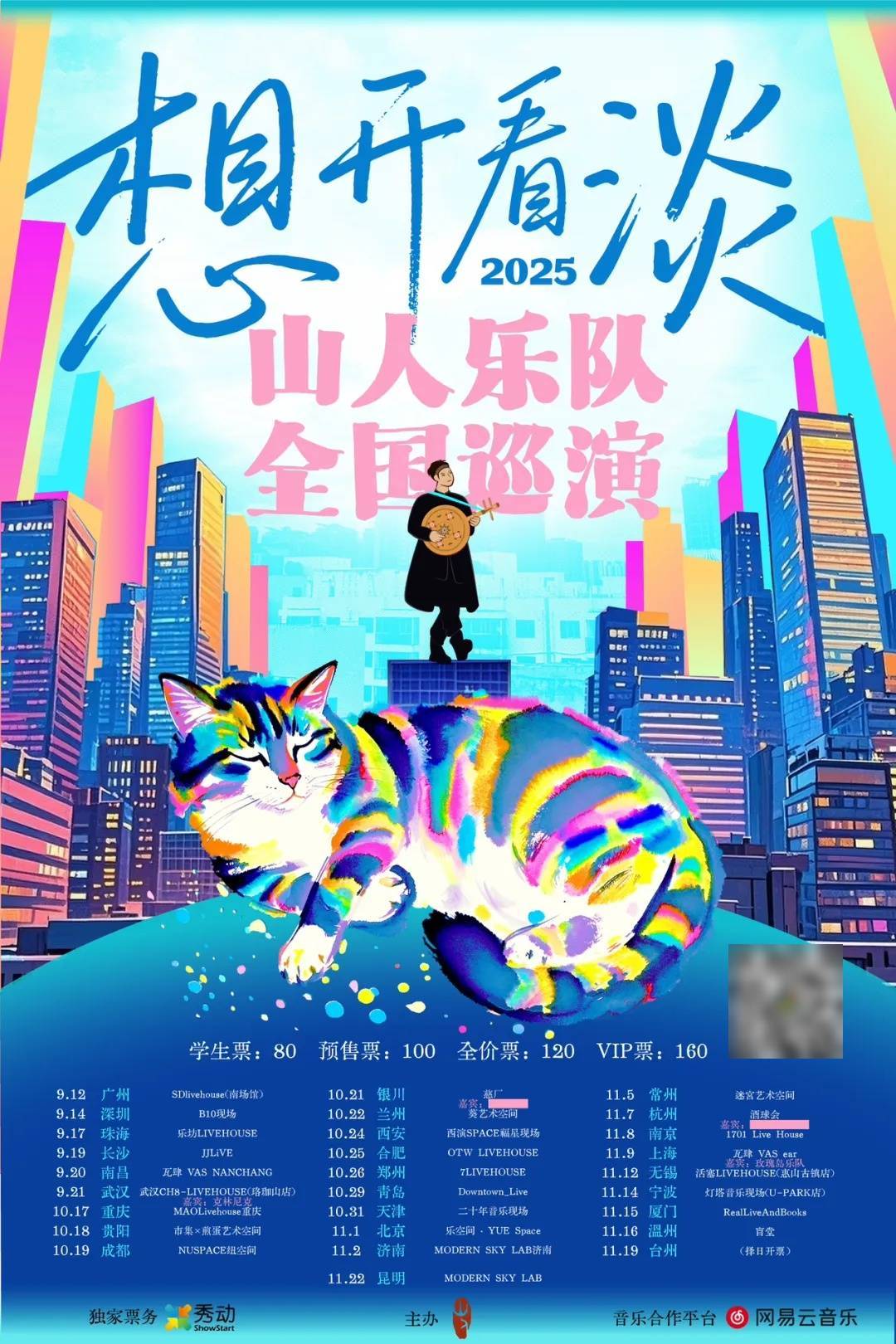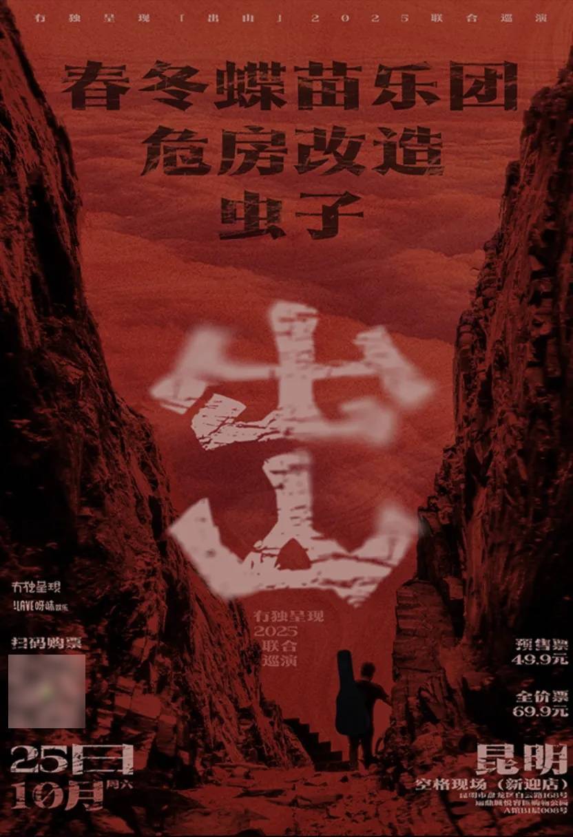 2025年,山人乐队再次出发,从9月到11月,走遍28座城市,把云南的自由、热情和快乐带到每一个角落。在舞台上,我们会大声唱、尽情跳;在舞台下,为你准备了丰富又充满趣味的体验,让每一位到场的乐迷都成为巡演的一部分。进门一杯自烤酒,民族服饰合影留念,《南归》舞台共舞,还有丰富巡演周边。