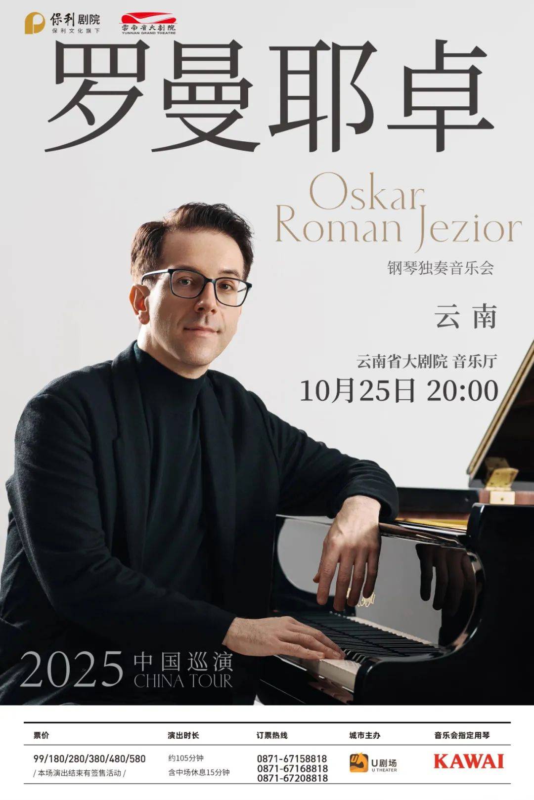 从破圈爆火的B站,到聚光汇聚的音乐厅,他带着无数人被触动过的旋律终于来到云南。奥斯卡·罗曼耶卓(Oskar Roman Jezior)是德国钢琴家,亦是作曲家和电影制片。奥斯卡在中国视频网站上发布了近300个钢琴演奏视频,获得了超3亿次观看,吸引了超200万粉丝,被中国网友们亲切地称为“O叔”。本次巡演曲目融合华语流行音乐、电影配乐与动漫音乐,熟悉的旋律将在他极具想象力的编排中焕发新声,呈现出别具一格的独奏美学;承袭自世界级音乐殿堂之一茱莉亚音乐学院的顶级演奏技法,奥斯卡将在传统与现代、理性与浪漫之间展开富有张力的对话,探索古典技法所释放的当代表达!
