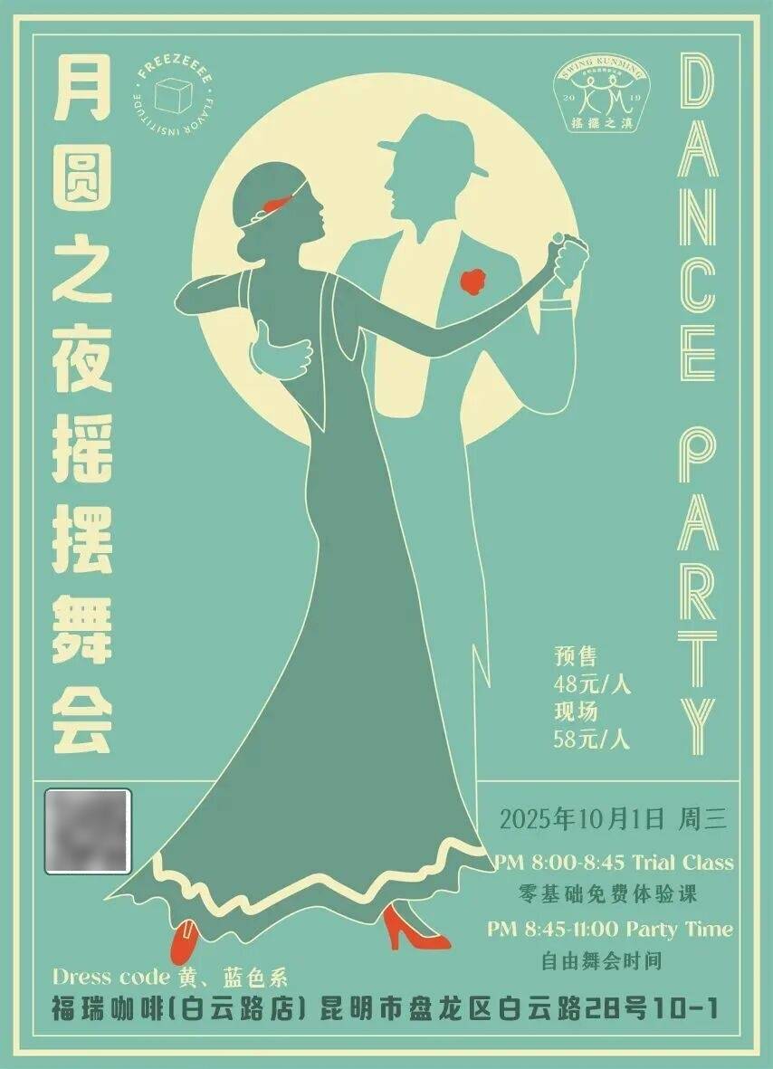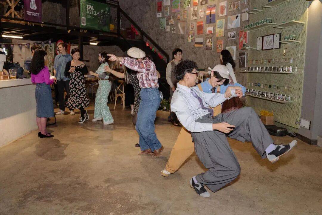 “月圆之夜”与“摇摆舞会”相遇,琥珀色的灯光,留声机里传出慵懒又热烈的爵士乐。每当圆月升至天窗正中央,时针指向午夜,舞会在一间隐藏在城市角落。FreezeeeeCafe拉开序幕。大家在舞池中轻盈旋转,影子被月光拉长,酒杯碰撞的清脆声、皮鞋在地板上的摩擦声、即兴的欢呼声,共同构成夜的韵律。当月光透过彩绘玻璃,洒下斑驳的光点,每个人都成了这首流动爵士诗里的一个音符。让我们抛开白天的束缚,让身体和灵魂在月光下尽情释放。