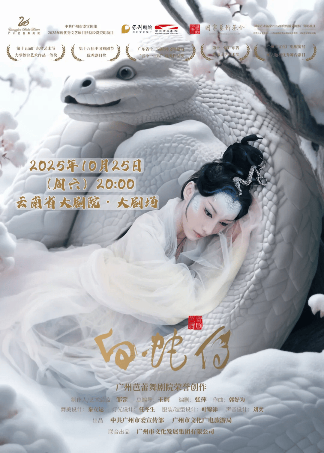 广州芭蕾舞剧院倾情演绎的原创芭蕾舞剧《白蛇传》改编自中国四大民间传说之一《白蛇传》,力图用足尖艺术打造一封写给世界的“中式情书”,并向世界展示中华民族历史优秀文化的巅峰之作。《白蛇传》主要从惊蛰、游湖、琴瑟、妄念、端阳、断魂、抉择、明心等重要情节出发,采用轻喜剧手法创作,用诙谐幽默传递出东方文化,期望在中国芭蕾剧创作上悲剧喜演的一个历史性的突破。