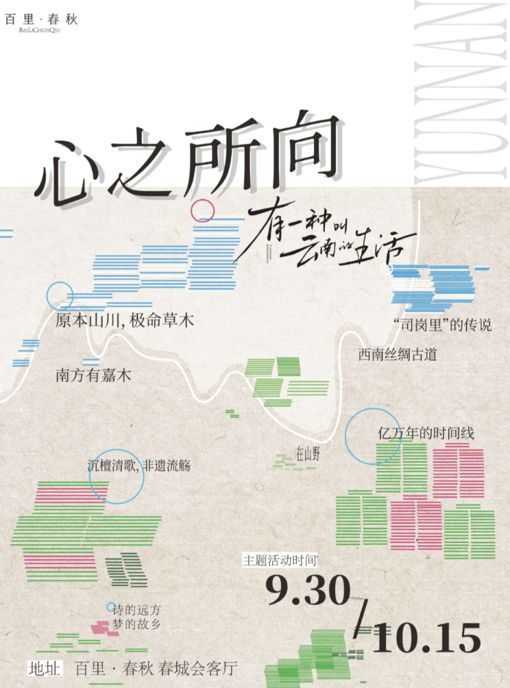 心之所向,是每个人心中对美好生活的想象与归属。云南,以她丰富的自然生态、深厚的历史积淀、多彩的民族文化与舒缓的生活节奏,成为理想生活的具象投射。“有一种叫云南的生活”不只是一个标签,更是一种生活的哲学:与自然共生,包容多元,既延续传统,也拥抱创新。这个秋天,百里•春秋将以市集、展览、阅读、沙龙等形式,让“云南生活”不再只是诗和远方,而是成为每个人都能触摸、参与和带回日常的真实选择。