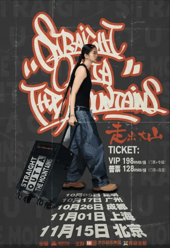 “山”是什么?是地理的隔阂,是身份的烙印,是现实的桎梏,也是偏见的围墙。但对于来自云南的 MC 脏脏而言,”山从来不是困住脚步的终点,而是磨砺初心的道场。如今,她的首次个人巡演「走出大山 Straight Outta the Mountains」即将启程。从昆明出发途经广州、成都、上海,最终抵达北京一-这不仅是一次身体的远行,更是一场为梦想破壁的奔赴。
