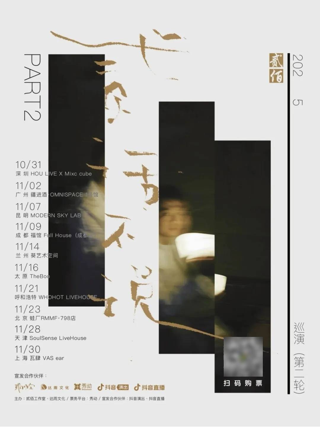 贰佰第二轮巡演,将继续带着我的乐队和全新的编曲,以及那些被时间打磨得愈发真实的歌,奔向你的城市。这一次,不是音乐节的人潮汹涌,不是拼盘演出的匆匆一瞥,而是一场,只属于我们的特别夜晚。