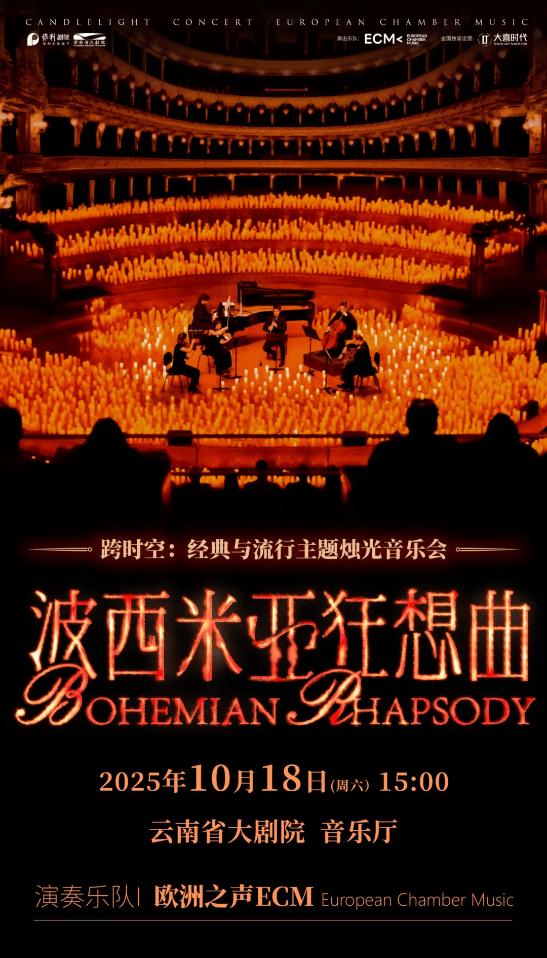 当经典电影旋律邂逅青年音乐家的澎湃激情,会碰撞出怎样的火花?2025年10月18日,欧洲之声室内乐团(EUROPEAN CHAMBER MUSIC)将登陆云南省大剧院,以弦乐、钢琴与黑管的绝妙组合,带你重温数十部影视经典,感受直击灵魂的“声”临其境!欧洲之声(EUROPEAN CHAMBER MUSIC)是一支来自欧洲,由六位优秀卓越的弦乐、钢琴与黑管演奏家组成的青年室内乐团。每一位乐手不仅在各白的音乐领域都有着卓越的表现与扎实的音乐演奏实力,还不断在探索和突破室内乐的界限,发挥创新思维,融合不同文化和音乐风格,创造出富有个性和深度的音乐作品。